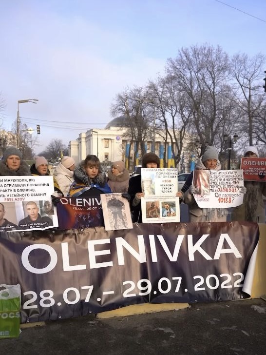 Na początku brałam udział w ogólnych spotkaniach. Słuchałam uważnie wszystkich bzdur, które opowiadali przedstawiciele Sztabu Koordynacyjnego do spraw jeńców wojennych. Dlaczego bzdur? Bo już rok później mówili rzeczy, które były dokładnym przeciweństwem tego, co wcześniej. Do psychologów im daleko, ale ich rola jest podobna. Po tym, jak 5 stycznia 2023 roku zamknęli misję monitorującą ONZ, która miała pojechać do Ołeniwki, napisałam wniosek do Biura Rzecznika Praw Obywatelskich Ukrainy z prośbą o spotkanie z rodzinami rannych jeńców wojennych. Odmówiono mi, powołując się na zapełniony grafik pana Lubinca. Po nieprzyjemnej rozmowie, jednak wyznaczyli nam spotkanie, ale z zastępcą. Właśnie tak zaczynał się szlak naszej walki, który potem przeszedł w organizację społeczną „Wspólnota Ołeniwki”.