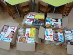 Діти бачать коробки з написами «Для захисників», та вкладають у ці коробки свої малюнки й вчаться найголовнішому уроку – як виглядає турбота в дії.