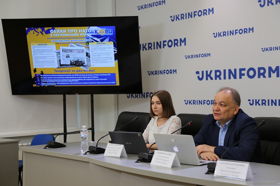 Сьогодні в інформаційному агентстві «Укрінформ» КРЦ провів презентацію на тему «Фейки про НАТО в окупованому Криму», під час якої разом із коллегами Таня Подворняк та Sergiy Parhomenko розповіли про тенденції поширення фейкової інформації в тимчасово окупованому Криму про НАТО за вересень-жовтень 2022 року.