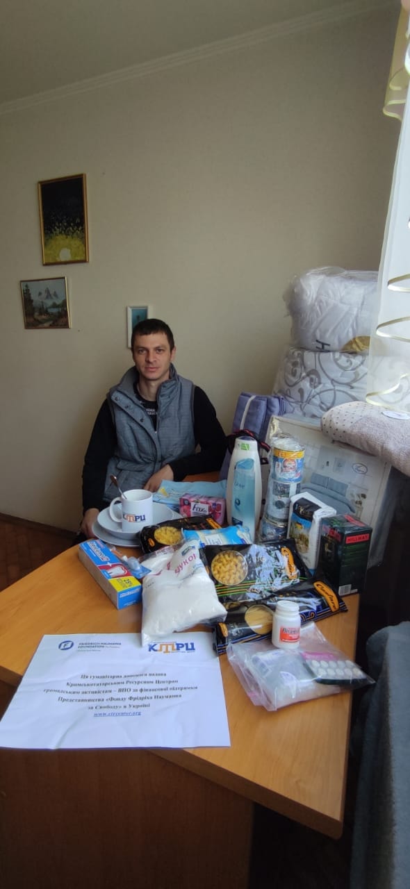 Тому Кримськотатарський Ресурсний Центр продовжує їх підтримувати, надаючи гуманітарну допомогу за підтримки Представництва «Фонду Фрідріха Науманна за «Свободу» у межах програми «Первинна гуманітарна допомога активістам-ВПО «Шоковий пакет».