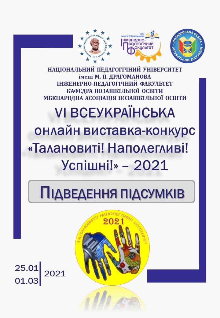 01.03.2021 завершилась VІ Всеукраїнська онлайн виставка-конкурс «Талановиті! Наполегливі! Успішні!» – 2021.