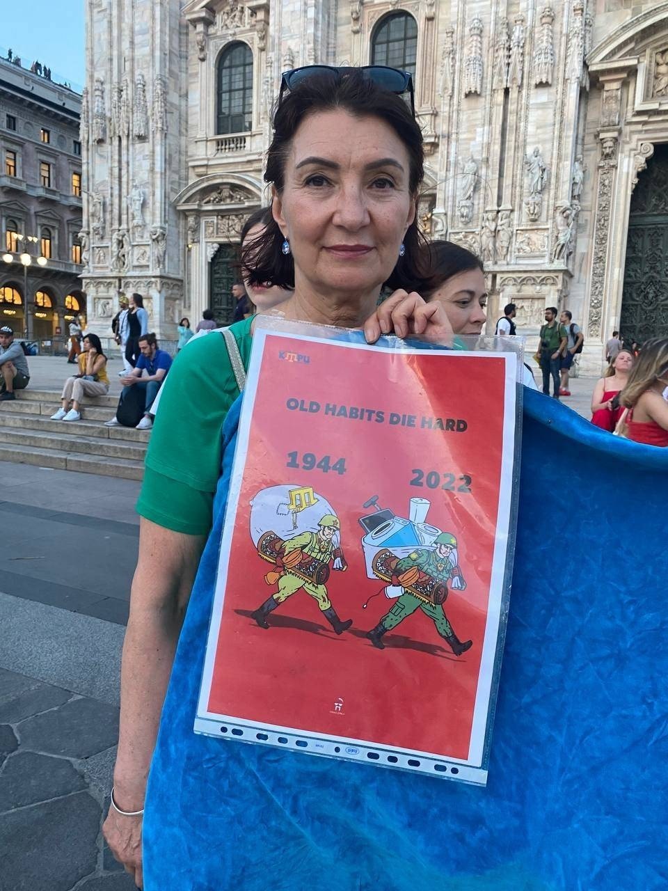 Приємно коли люди різних національностей, що проживають у різних куточках світу, не просто солідарні та підтримують кримськотатарський народ, але й також виходять на акції з плакатами, розробленими Кримськотатарським Ресурсним Центром, активістами міжнародного руху за деокупацію Криму і солідарність з кримськотатарським народом #LIBERATECRIMEA і українським художником Андрієм Єрмоленком.