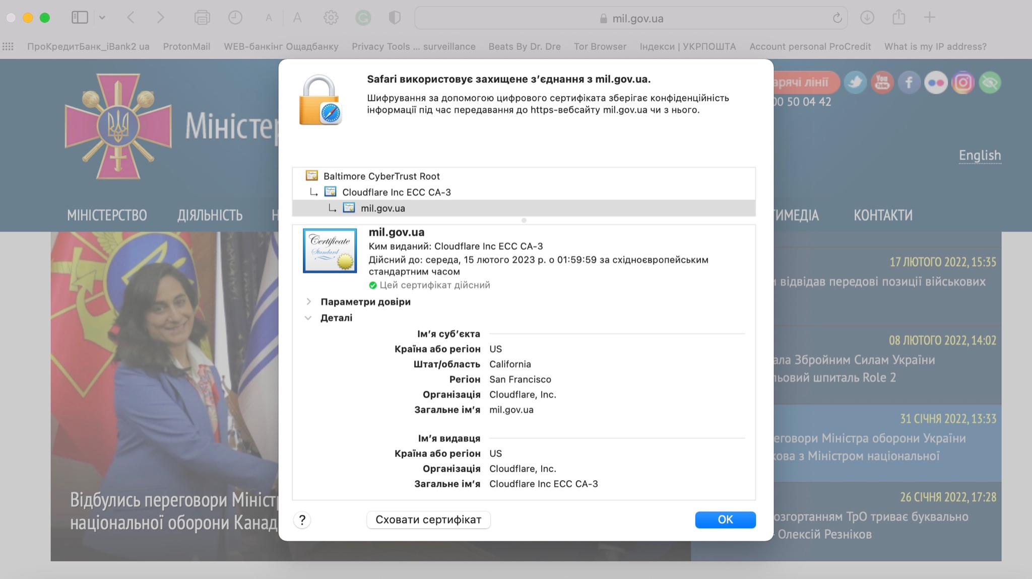 Також поряд має бут зображений закритий замочок – це означає надійний перевірений сертифікат безпеки. На нього можна натиснути і переконатися, кому і ким був виданий сертифікат.