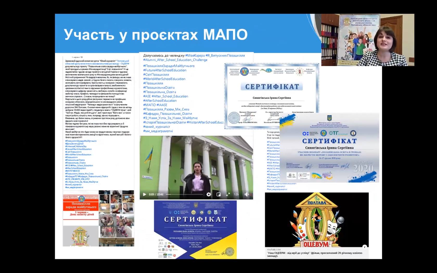 Окрема подяка президенту МАПО, завідувачу кафедри позашкільної освіти Національний педагогічний університет імені М.П.Драгоманова професору Олені Биковській (Olena Bykovska) за створення умов для творчого професійного зростання та реалізації педагогів!