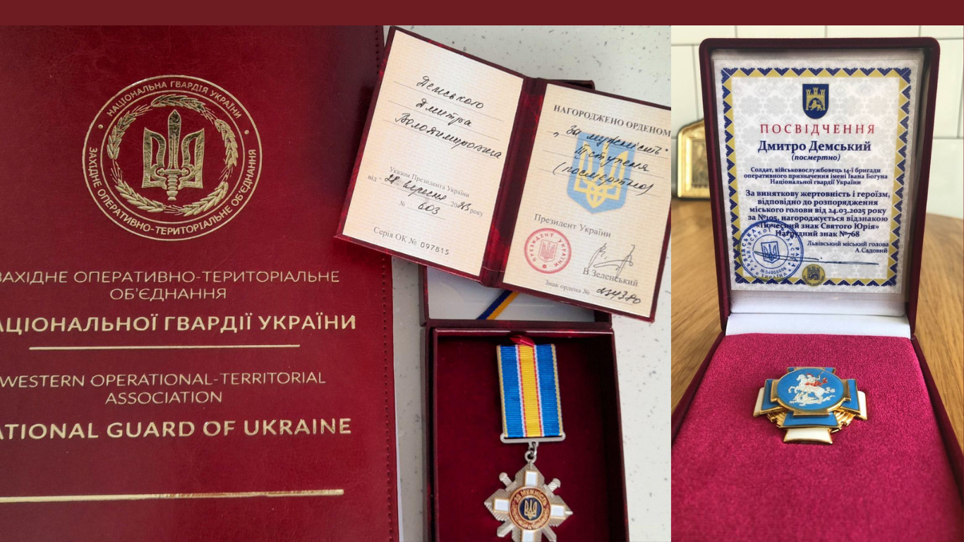 За свою службу і відвагу Дмитро був посмертно нагороджений орденом «За мужність» ІІІ ступеня та відзначений почесним знаком Святого Юрія – як свідчення того, що його вибір і його шлях не залишилися непоміченими.