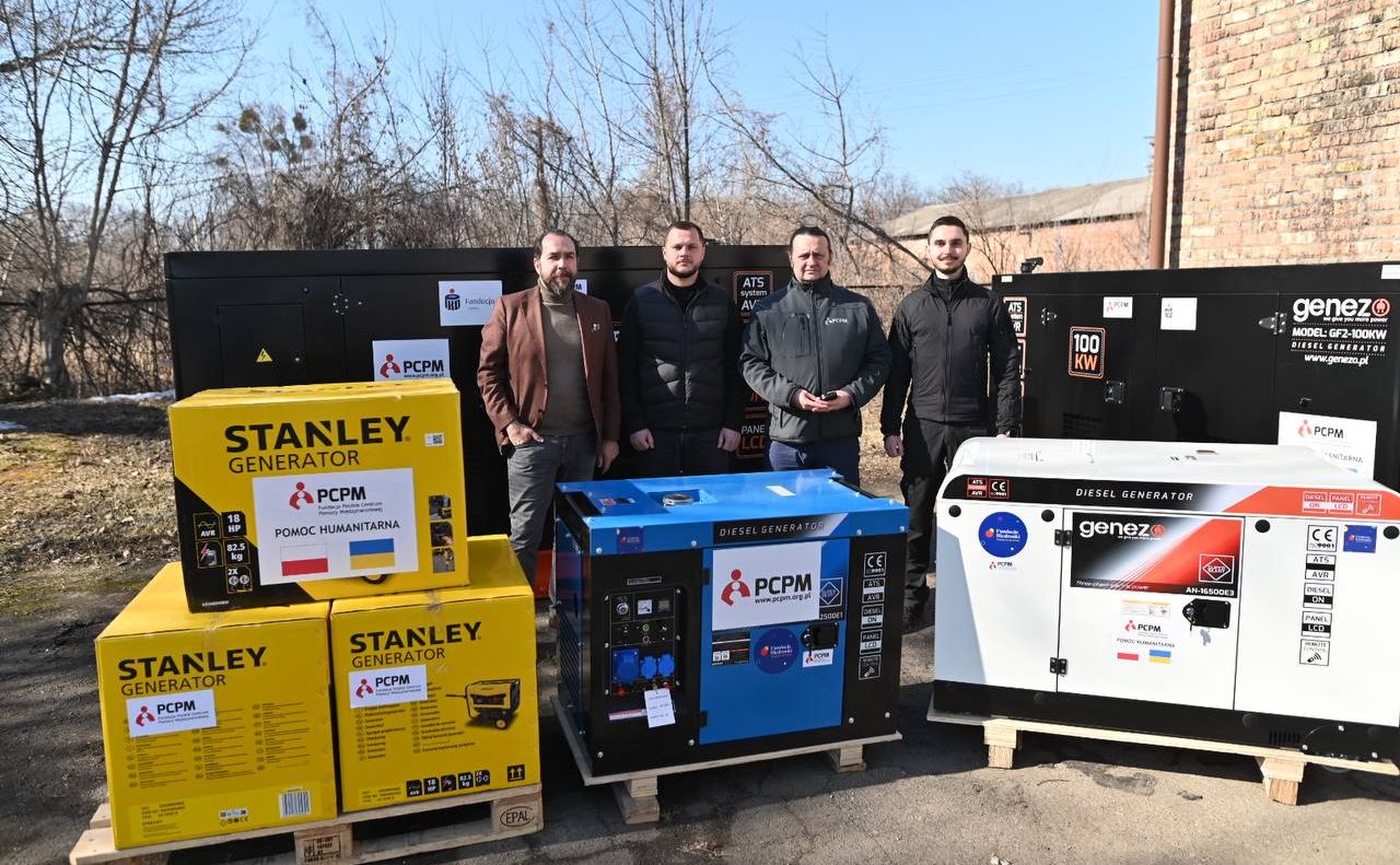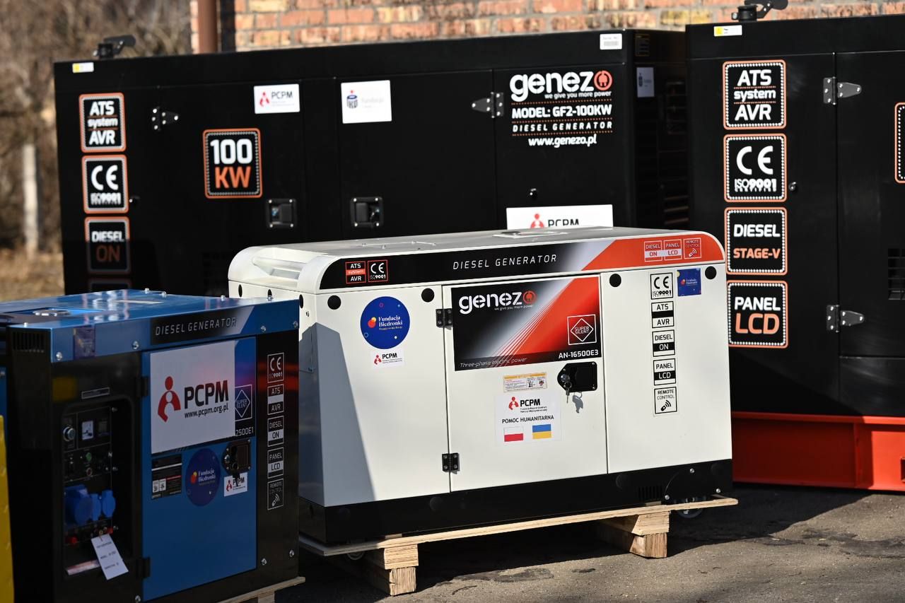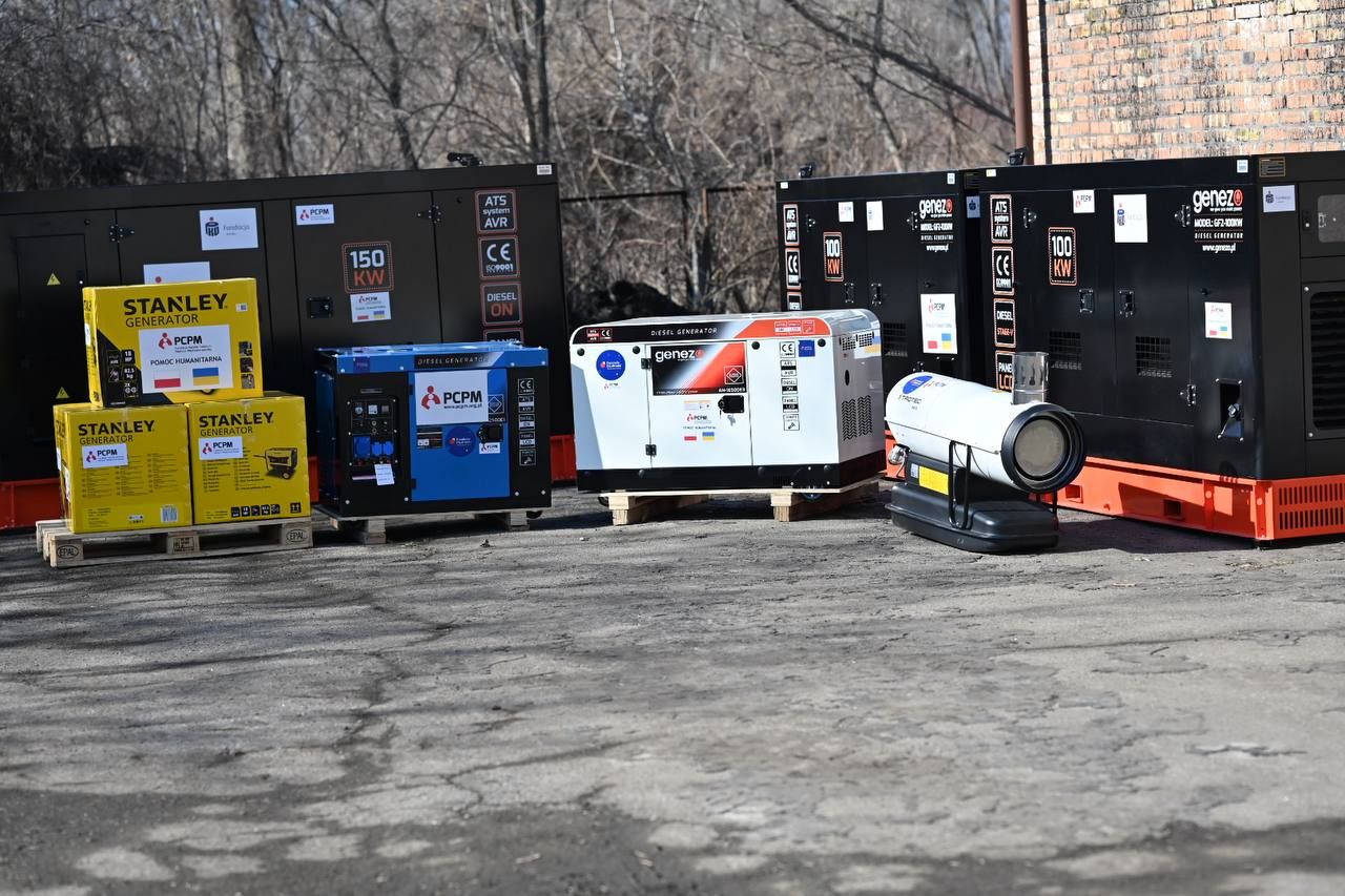 Від Fundacja Polskie Centrum Pomocy Międzynarodowej передано: генератор на 150 кВт, два генератори по 100 кВт, генератор на 16 кВт, генератор на 5,5 кВт, а також дизельний нагрівач повітря потужністю 50 кВт.