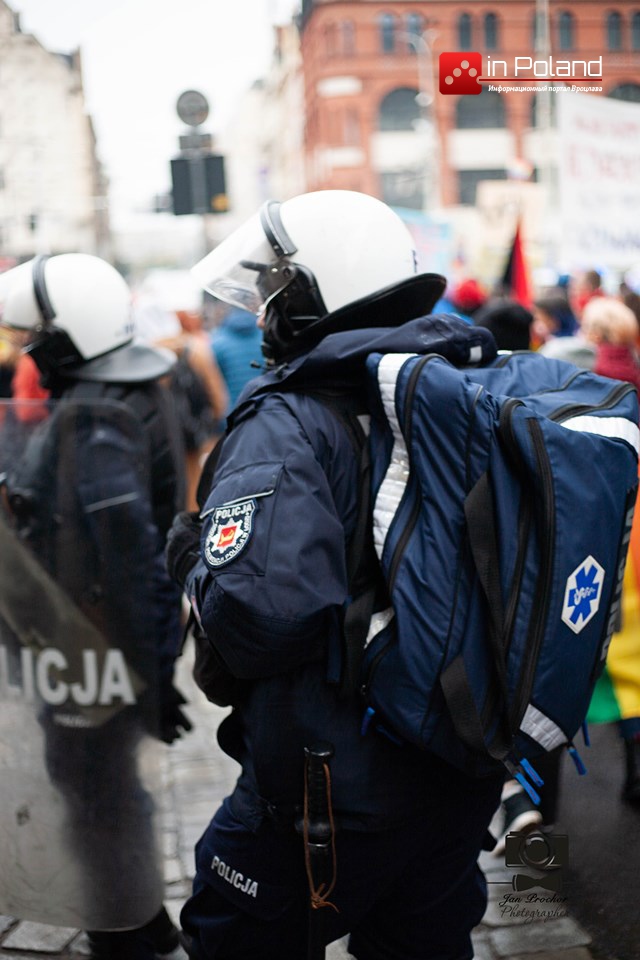 Співробітники поліції вже кілька тижнів готувалися до забезпечення безпеки демонстрації, організованої у Вроцлаві. У суботній акції за безпекою спостерігали поліцейські різних підрозділів, та залучена техніка – водомети.
