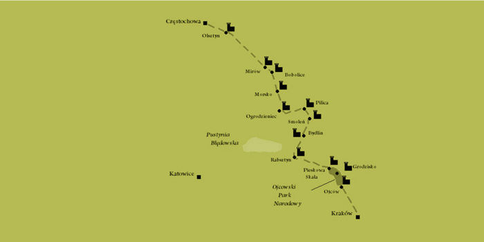 Традиційно подорож розпочинається в Ченстохові (Częstochowa) – сакральному місті для всіх поляків – під Ясною Горою (Санктуарій Пресвятої Діви Марії Ясногорської). Перед початком подорожі варто відвідати монастир, аби побачити найголовнішу духовну реліквію Польщі – чудотворну ікону Ченстоховської Божої Матері (Чорна Мадонна), яку, до речі, в ХІІІ столітті Лев Данилович, син короля Данила Галицького, привіз у місто Белз і яка до середини XIV століття була іконою Руського королівства.