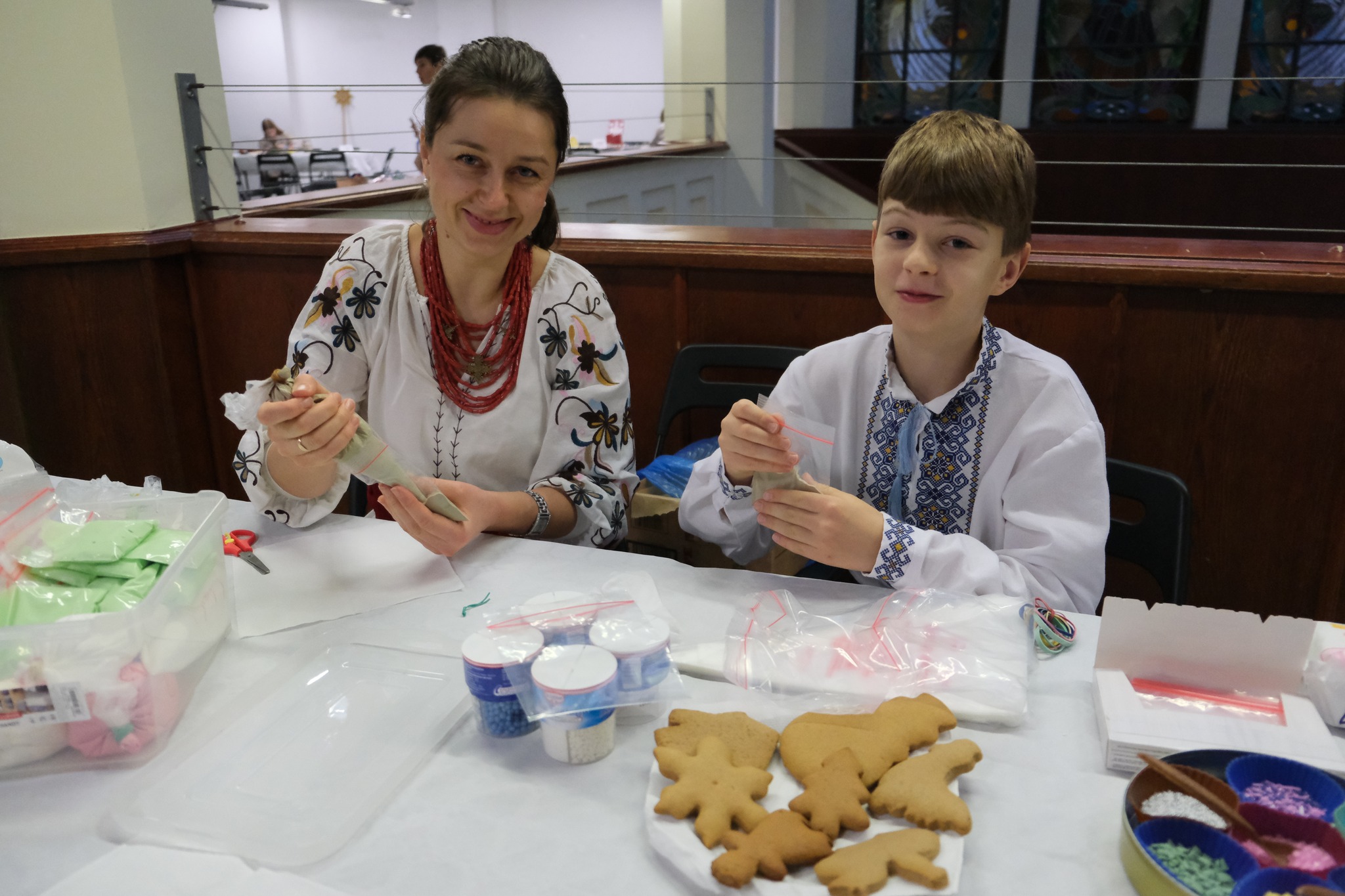 Для дітей і дорослих працювали творчі зони. Учасники мали змогу навчитися плетіння різдвяного павука, розпису пряників, техніці вибійки, виготовленню витинанок, свічок із вощини та зірок для колядників.