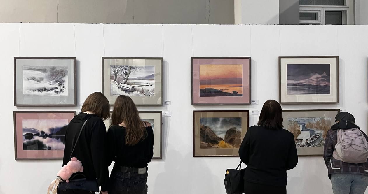 Так, в атріумі відвідувачів зустрічають яскраві акварелі «Квіти України — квіти Перемоги», які митець малює з 2019 року.