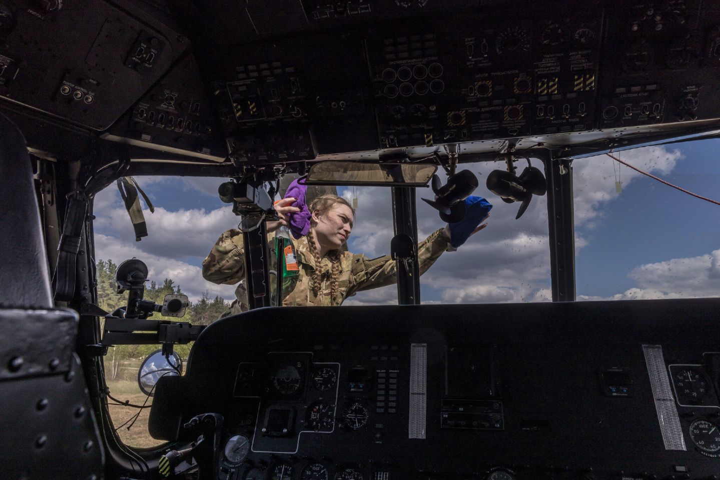Серед авторів фото — є й українське прізвище — Оксана Парфенюк, вона авторка світлини з єдиною жінкою-пілотом ЗСУ Катериною біля кабіни її гелікоптера Мі-8.