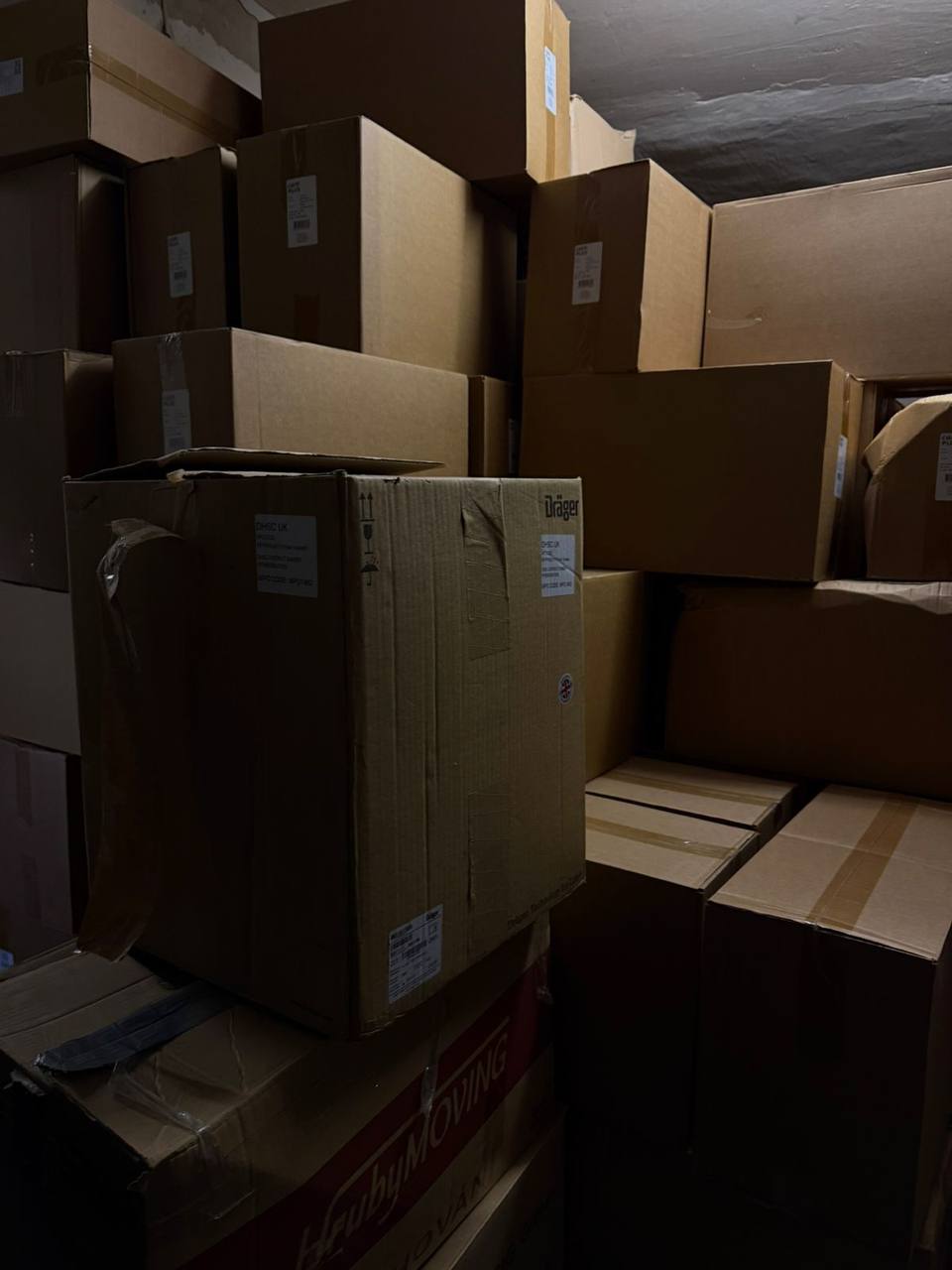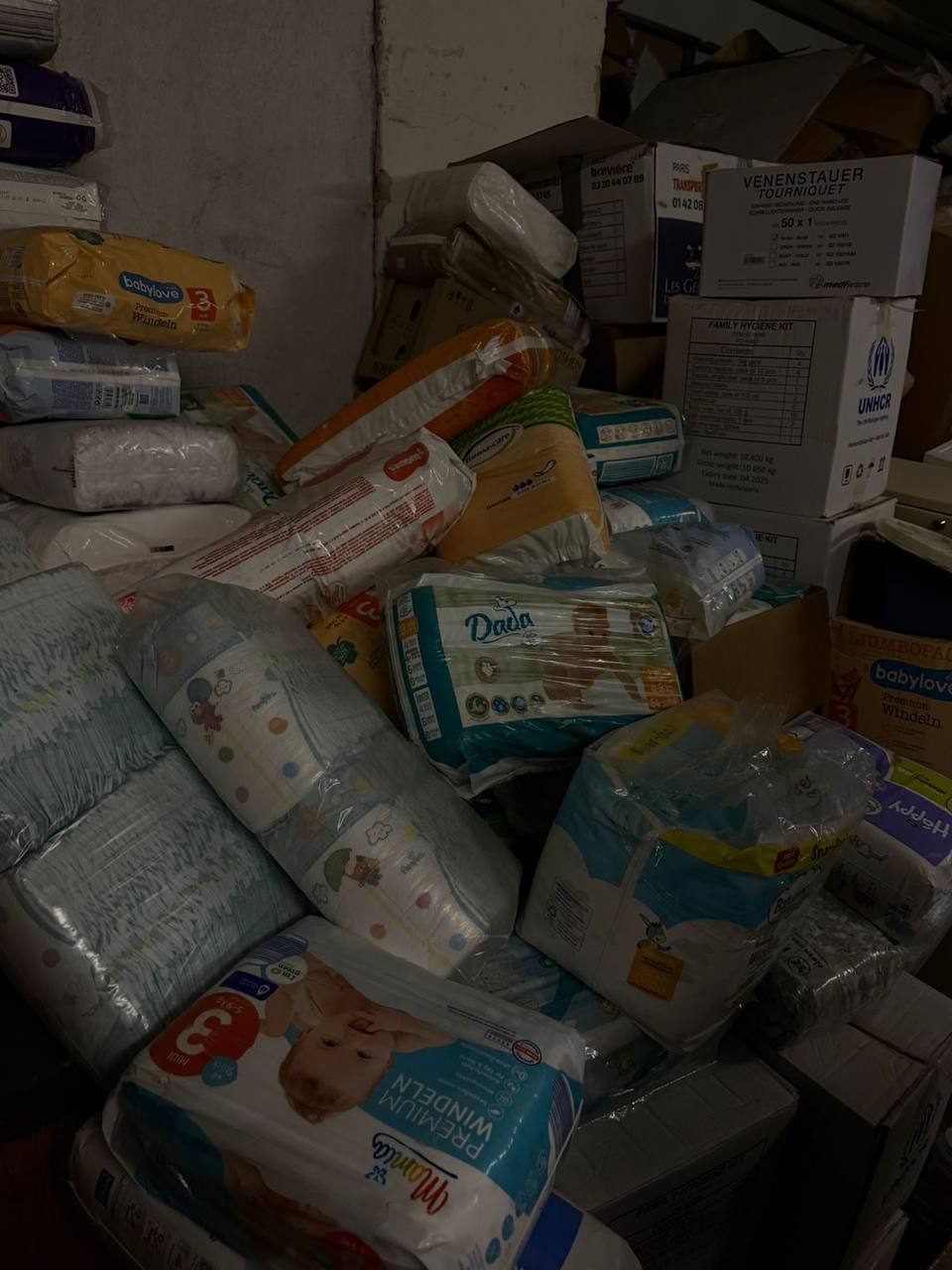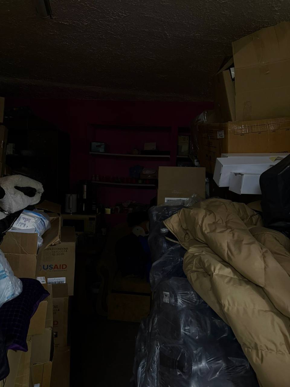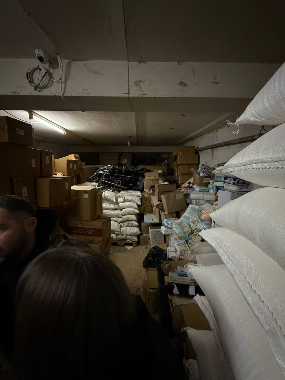 Під час огляду встановлено, що підвальне приміщення майже повністю зайняте гуманітарною допомогою, частина якої має маркування 2022–2023 років. За наявною інформацією, ці вантажі надходили від Київської обласної державної адміністрації та міжнародних партнерів і мали бути розподілені серед населення та військових у період їх отримання, а не зберігатися роками у підвальному приміщенні житлового будинку.