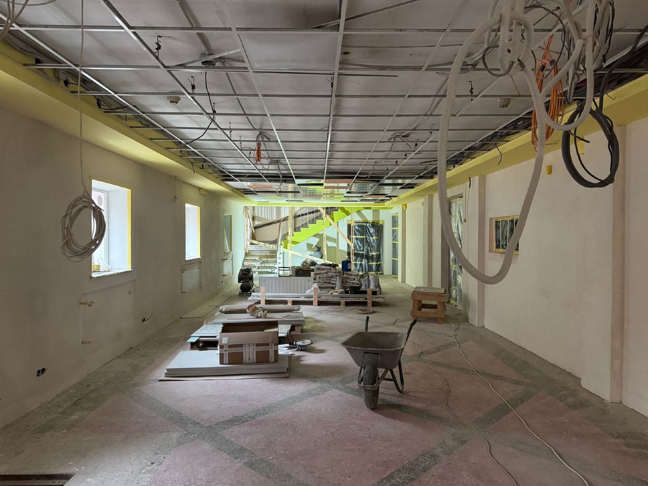 Наразі вже виконано основні технічні роботи: підведено електроенергію, змонтовано системи вентиляції, опалення та кондиціонування, проведено водопостачання й каналізацію, встановлено ліфтове обладнання та підйомник.