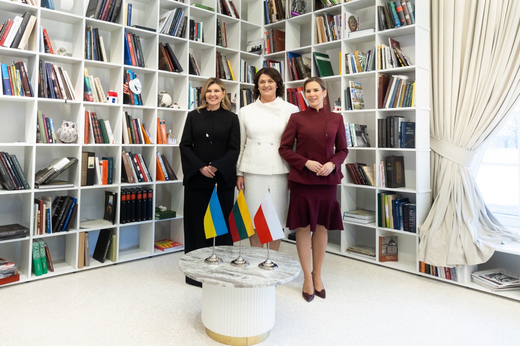 Перша леді України Олена Зеленська у Вільнюсі провела зустріч із першими леді Литви і Польщі Діаною Наусєдєнє та Мартою Навроцькою.