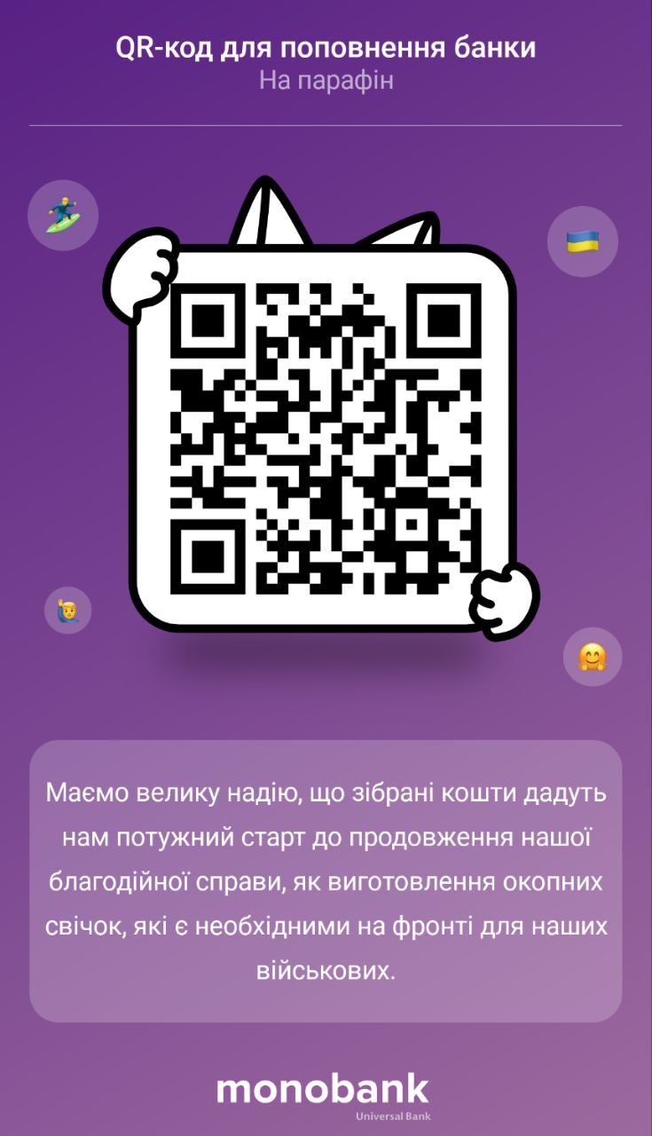 Ми продовжуємо збір коштів на парафін. 📦 Реквізити та QR-код