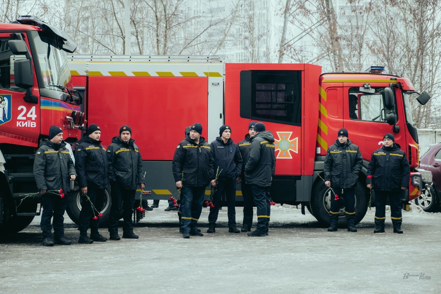 Біля 24 державної пожежно-рятувальної частини сьогодні вранці було дуже людно. Чоловіки і жінки у формі ДСНС несли квіти.