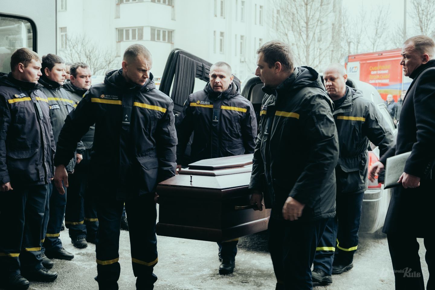 Коли виносили труну з тілом рятувальника з пожежної частини, а потім від’їжджав катафалк — пожежні машини подали сигнал…