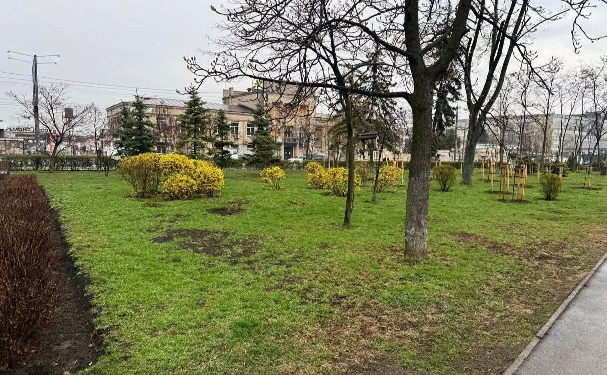 Сквер наповнили зеленню: посадили десятки дерев, сотні кущів, багаторічні рослини та квіти. Родзинкою стала велика клумба зі злакових трав і багаторічників, яка додає простору особливого характеру.