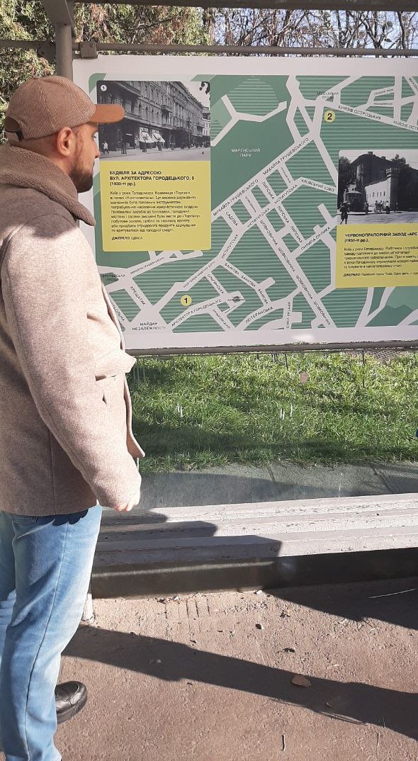 Тлом банерів є картосхема центру Києва з маркуванням місць, які дотичні до історії Голодомору.