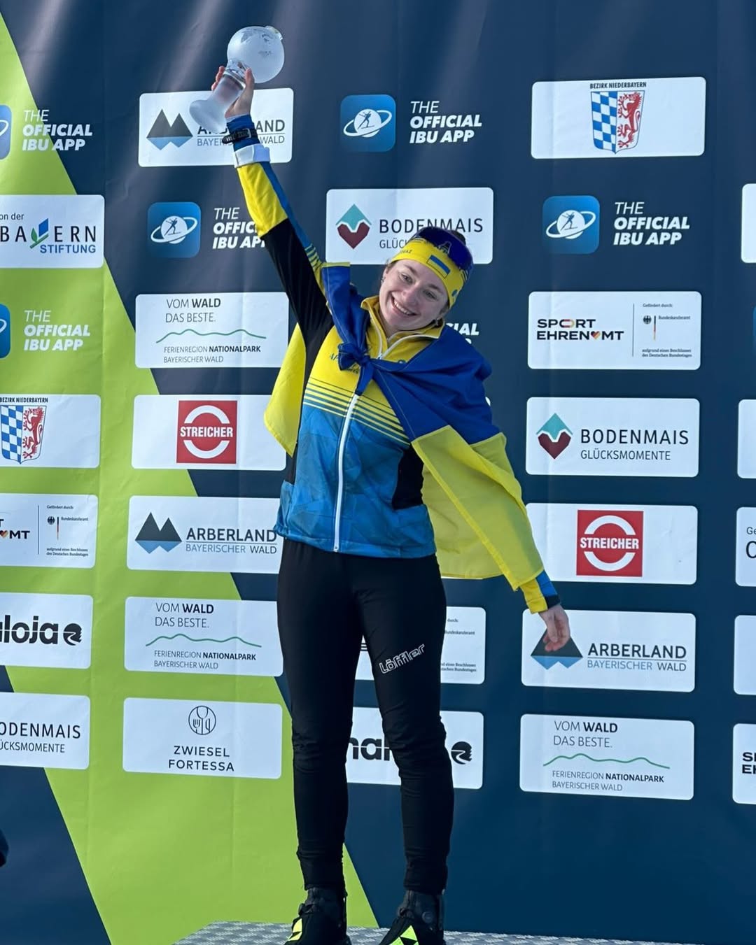 Почесний трофей Тетяна Тарасюк отримала після завершення спринтерської гонки на юніорському чемпіонаті світу у Арбері (Німеччина).