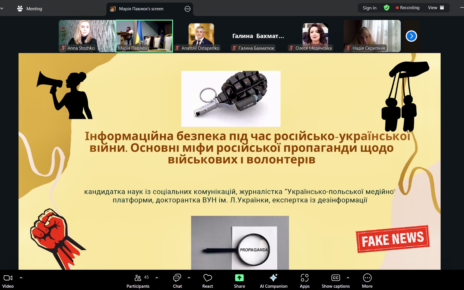 Уляна Кузик, військовослужбовиця та волонтерка, додала: «Фейки часто б’ють по родинах військових, намагаються підірвати довіру. Тому ми мусимо бути пильними й навчати молодь критично мислити». Ці слова підтвердили: військові та ветерани — не лише символи стійкості, а й практичні експерти, які щодня стикаються з інформаційними атаками і знають, як їм протидіяти.