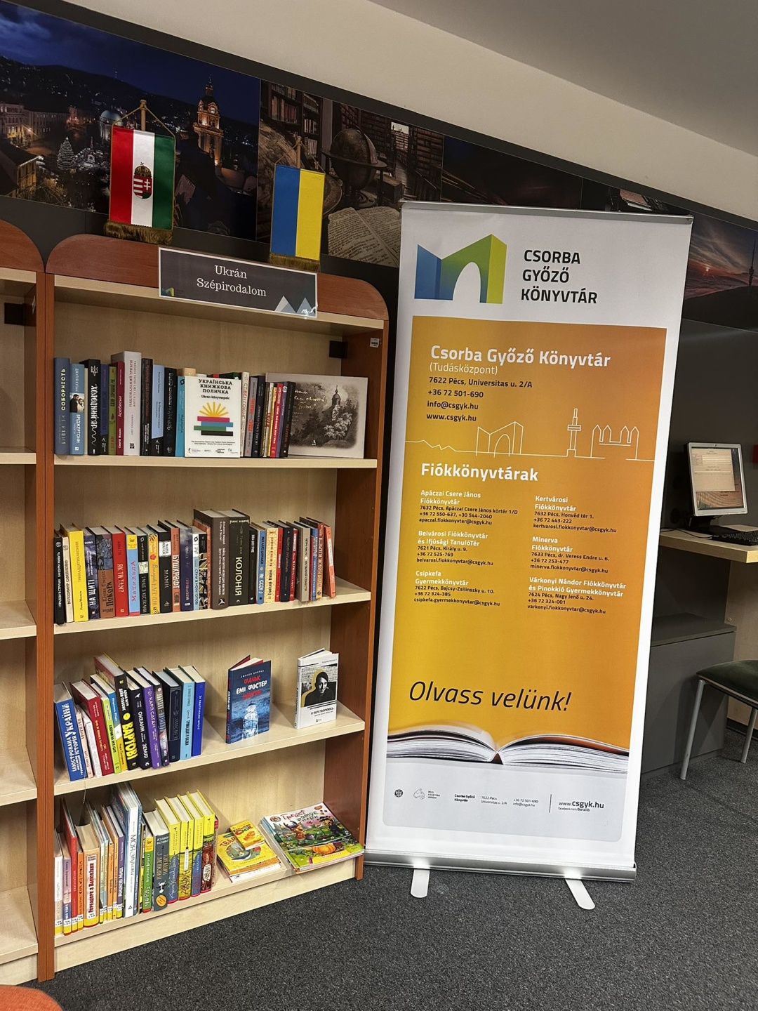 У бібліотеці імені Чорба Дьозо в угорському місті Печ з’явилася перша «Українська книжкова поличка», фонду якої поповнився близько 100 книжками сучасної української художньої та дитячої літератури.