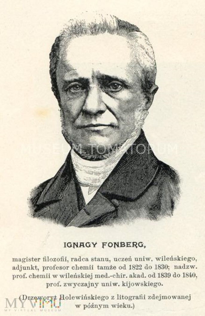 Після закінчення у 1817 році гімназії у місті Білосток, Ігнатій Фонберг починає вивчати хімію у Віленському університеті під керівництвом професора Анджея Снядецького. Від 1821 року Фонберг вже працює в цьому університеті, а через 8 років стає його професором. Заснований ще у 1579 році як Віленська єзуїтська академія (колегія) Стефаном Баторієм, Великим князем Литовським і Королем Польщі, Віленський університет був другим найстарішим університетом у Речі Посполитій після Ягеллонського у Кракові.