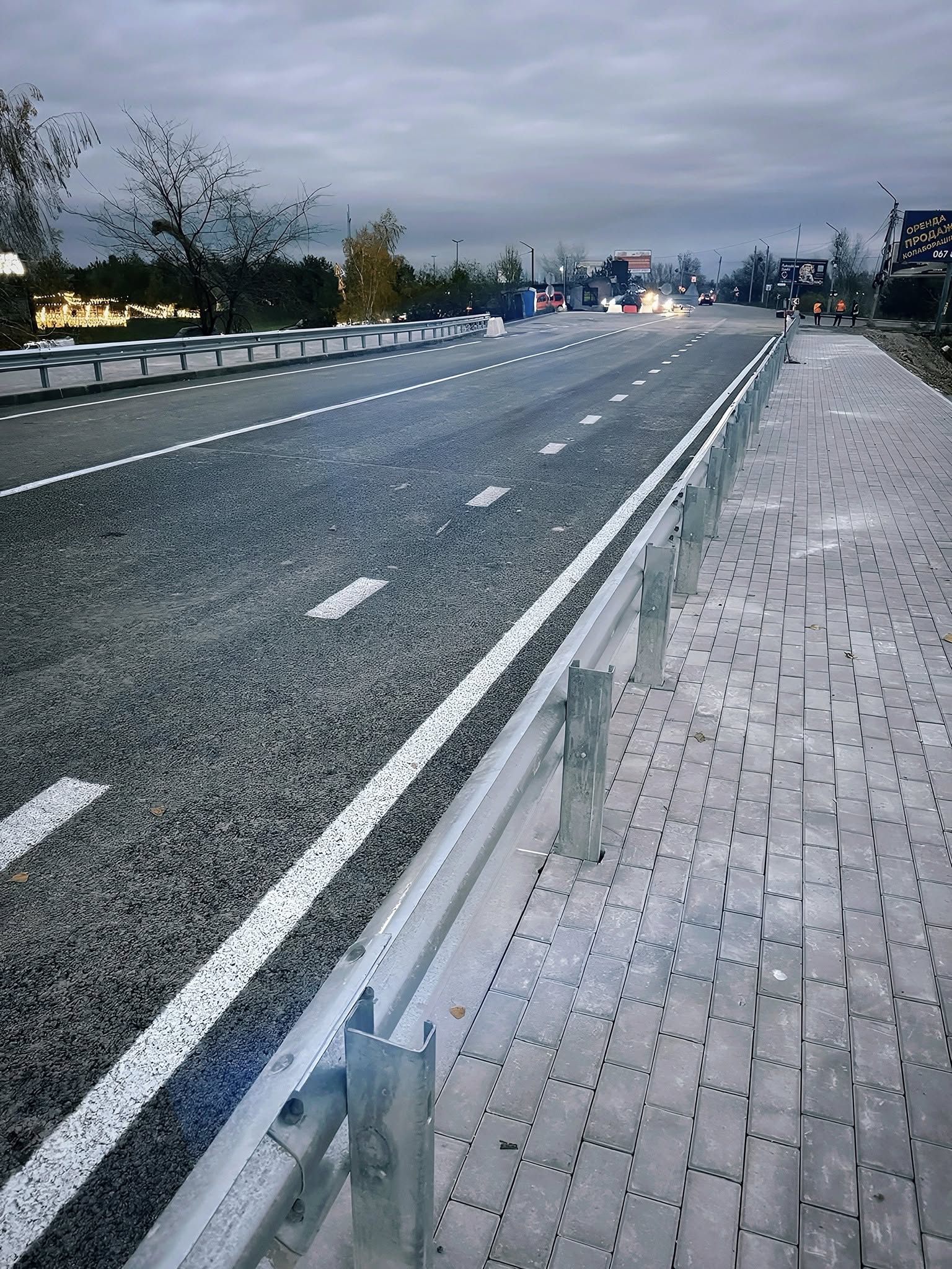 Також вже забетоновано монолітну залізобетонну плиту, змонтовано тротуари шириною 2,5 м для пішоходів та велосипедистів, підходи по 50 м з обох сторін мосту. Крім того, встановили нове перильне та бар’єрне огородження. Водовідвід з мосту та проїзної частини підходів організований в очисні споруди.
